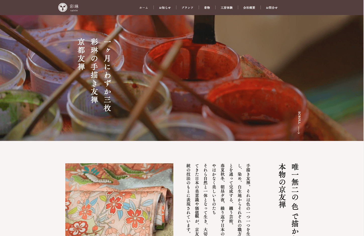 今回は彩琳の公式サイトリニューアルの最初の一歩です。これからも彩琳は手描き京友禅の第一人者として今後も随時ページを追加・更新しパワーアップさせていきます。