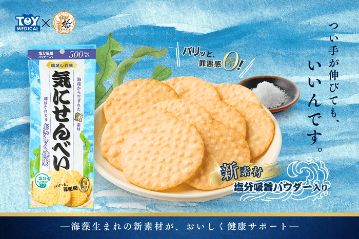 トイメディカル株式会社(本社:熊本県熊本市、代表取締役社長:竹下英徳、以下「当社」)は、海藻由来の塩分吸着パウダー入りの新商品「オランダせんべい 気にせんべい」を明日2025年3月28日(金)よりトイメディカル公式オンラインショップでの販売を開始いたします。この商品は山形県庄内地方で生まれた元祖うす焼き煎餅ブランド「オランダせんべい」とのコラボ商品です。
