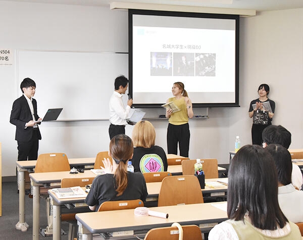 マーケティングについて学ぶ山岡ゼミに所属しています。名古屋鉄道(株)との産学連携で、「名鉄電車(瀬戸線)の利用者増加の施策」をテーマにした課題で、私の案が1位に選ばれました。電車の中をクラブに仕立てて音楽イベントを行うというもので、始発駅から終点までの往復で楽しめるアイデアを出しました。この時は名鉄の社員さんにプレゼンをしなければならなかったため、スライドを使ったプレゼンの練習を何度も重ねました。企画力に加えてプレゼン力を磨くことができたと思っています。