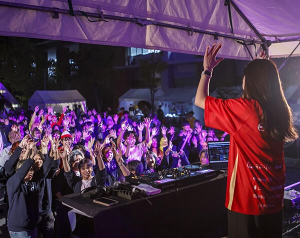 DJは観客との一体感を醸成することがもっとも重要で、そのために観客と目線を合わせたり、手を振ったりなど、コミュニケーションをその場でうまく図っていく必要があります。加えて流行りの曲などの情報のインプットも欠かせません。これらすべては普段の研究や学生生活に繋がる要素も多く、どちらかと言うと前に出ることが苦手なタイプだったのですが、やりたいことであれば、人前でも“やりきる”強い精神力と行動力が身に付いたと思います。