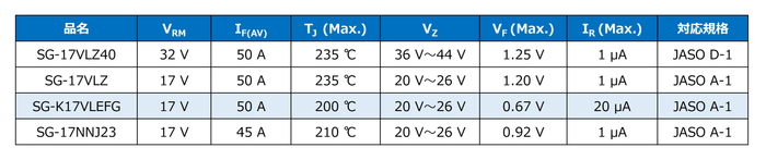 車載オルタネータ用ダイオード 「SG-K17VLEFGR、SG-K17VLEFGS」量産を開始 当社従来品と比べ順方向降下電圧を約40%低減