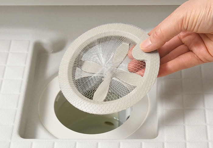 髪の毛をしっかりキャッチするので、排水管の詰まり予防になります。髪の毛を触ることなくネットごとポイッ!と捨てられます。
