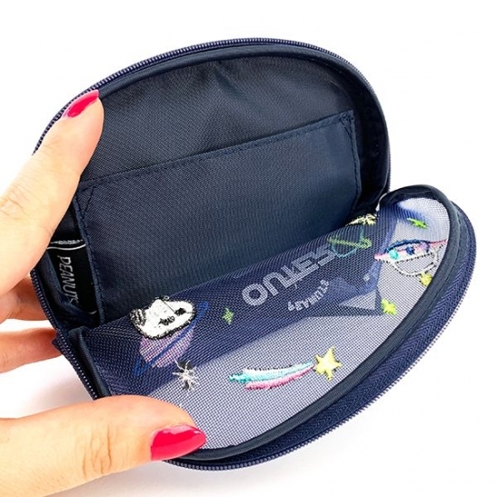 スヌーピーのアイテムに新登場の、アウトスペースシリーズ。ネイビーを基調としていて、シックな色合いで使いやすいデザインです。夜空を見上げたようなデザインが魅力的で、男女問わず使えますよ♪