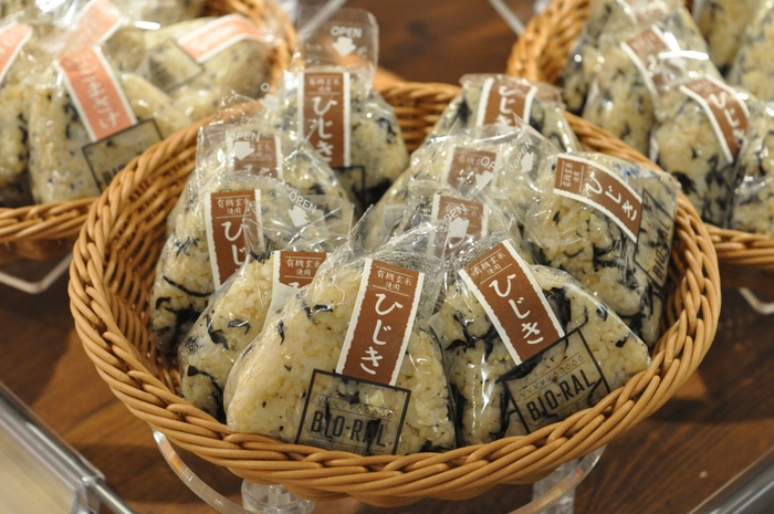 ビオラルのおにぎりは、「国産有機玄米」や「コウノトリ育むお米(特別栽培米)」など健康に配慮したお米を使用しています。