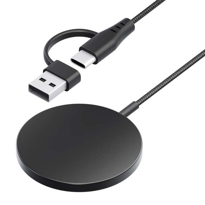 マグネットでピタッ!と充電が可能なマグネット式ワイヤレス充電器 USB Type-C一体型ケーブルです。