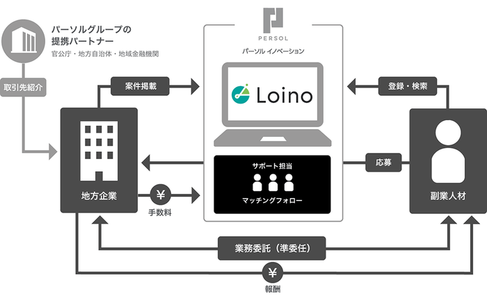 「Loino」では、パーソルグループのビジネスアライアンス網と人材マッチングスキルを活かし、都市部人材の成長と自己実現、地方企業の発展、地方への人材還流に寄与してまいります。