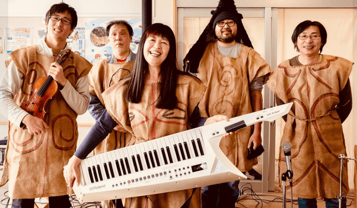 コンピュータ、生楽器、縄文楽器を組み合わせた、オンリーワンのバンド編成。