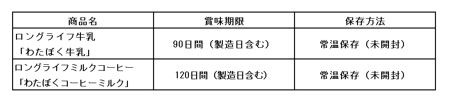リターン品 ロングライフわたぼく牛乳、ロングライフわたぼくミルクコーヒー