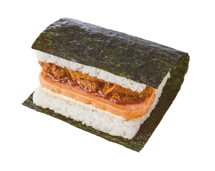 【内容】BBQソースで味付けしたアンガスビーフと「SPAM(R)」を使用した肉×肉の具材を使用したおむすびです。たっぷりアンガスビーフとマヨネーズ、スモーキーなBBQソースを、「SPAM(R)」と組み合わせ、ボリューミーでアメリカンな味わいに仕上げました。