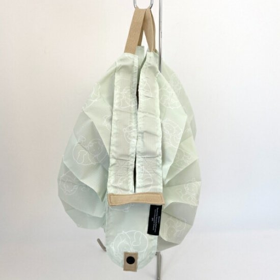 ころんとした丸い形状のエコバッグ。淡い色合いでありながら持ち手とのコントラストがおしゃれですよね。大きさは35×30cmほどでMサイズとなっています。