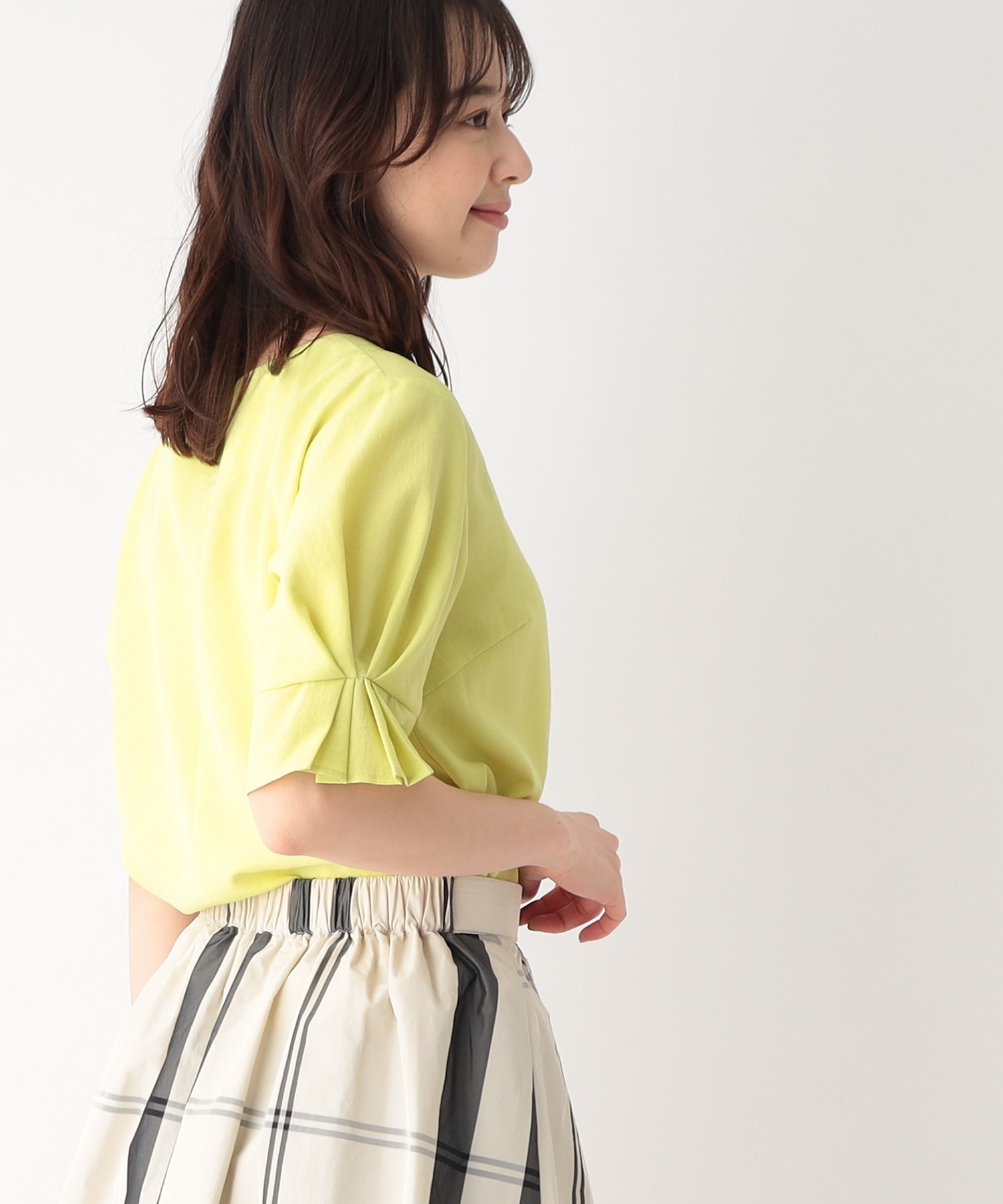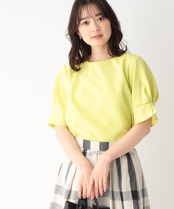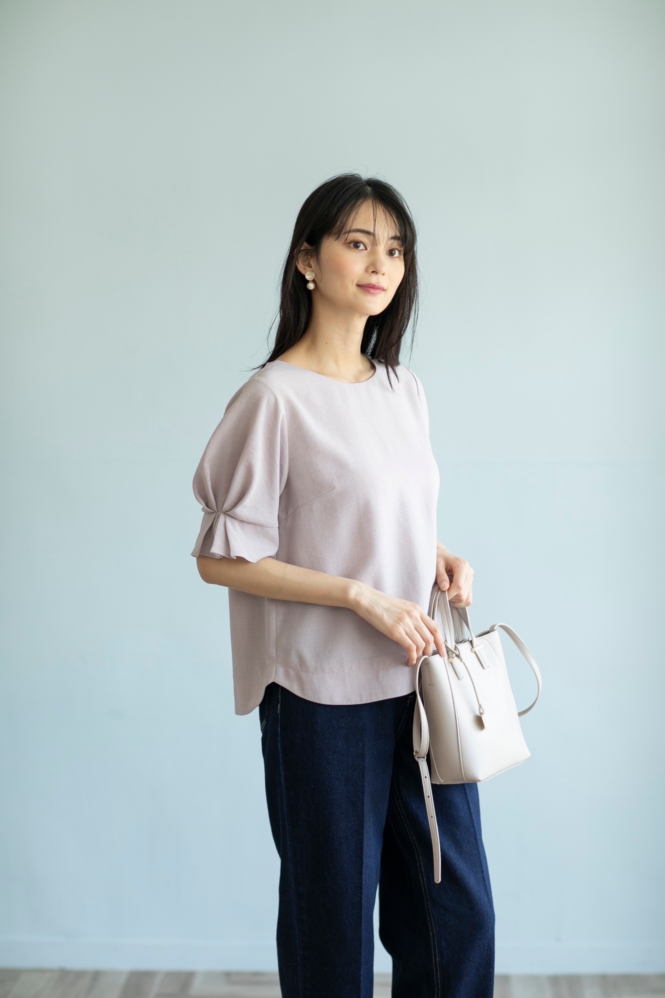 二の腕を柔らかに包むパフスリーブは、袖口にあしらったタックが華やかな印象を与えてくれます。