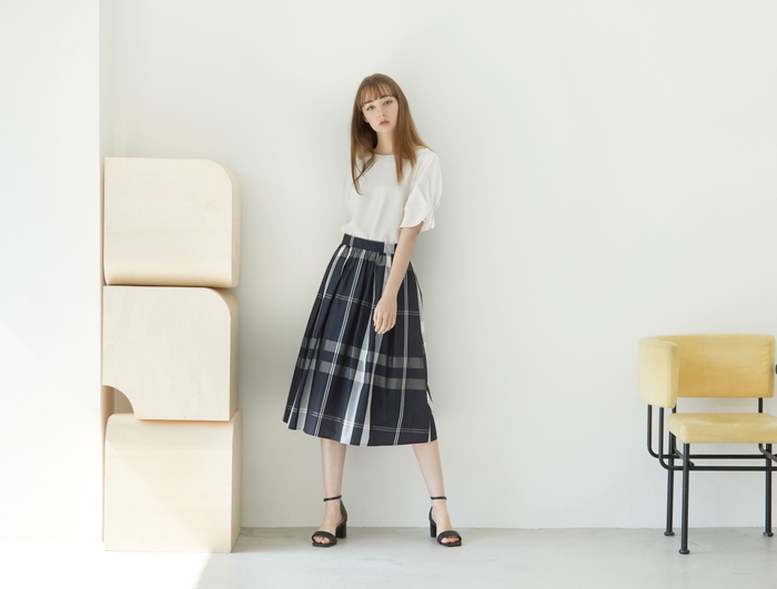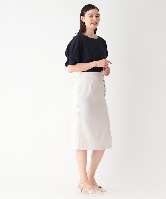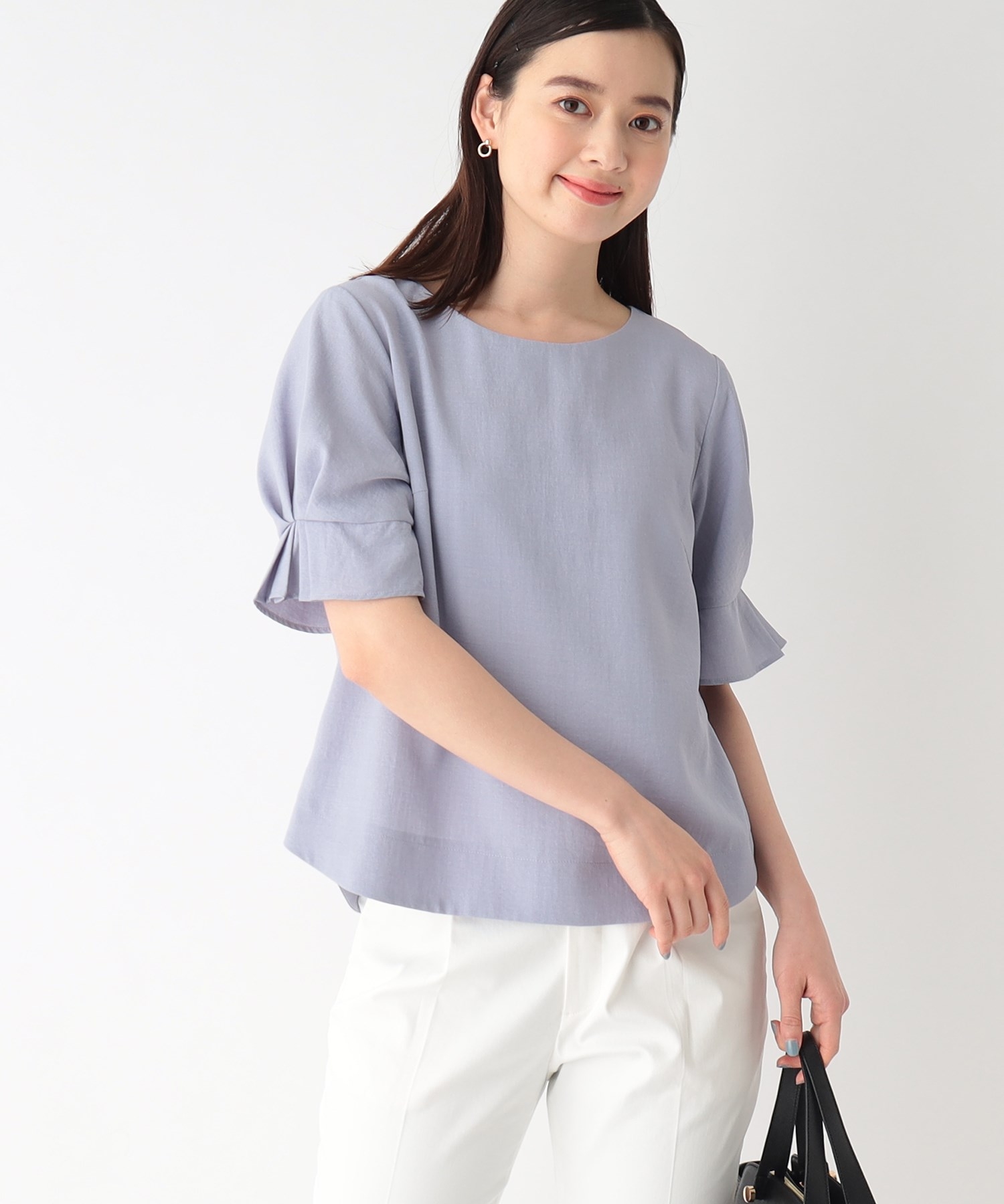発売から3シーズン目となる今年、累計販売数8万枚を突破した人気のタックスリーブブラウスは、これからの季節に向けて嬉しい機能付きの麻調合繊素材“タンブラーブッチャー”を使用した、オン・オフ共に活躍するアイテムです。