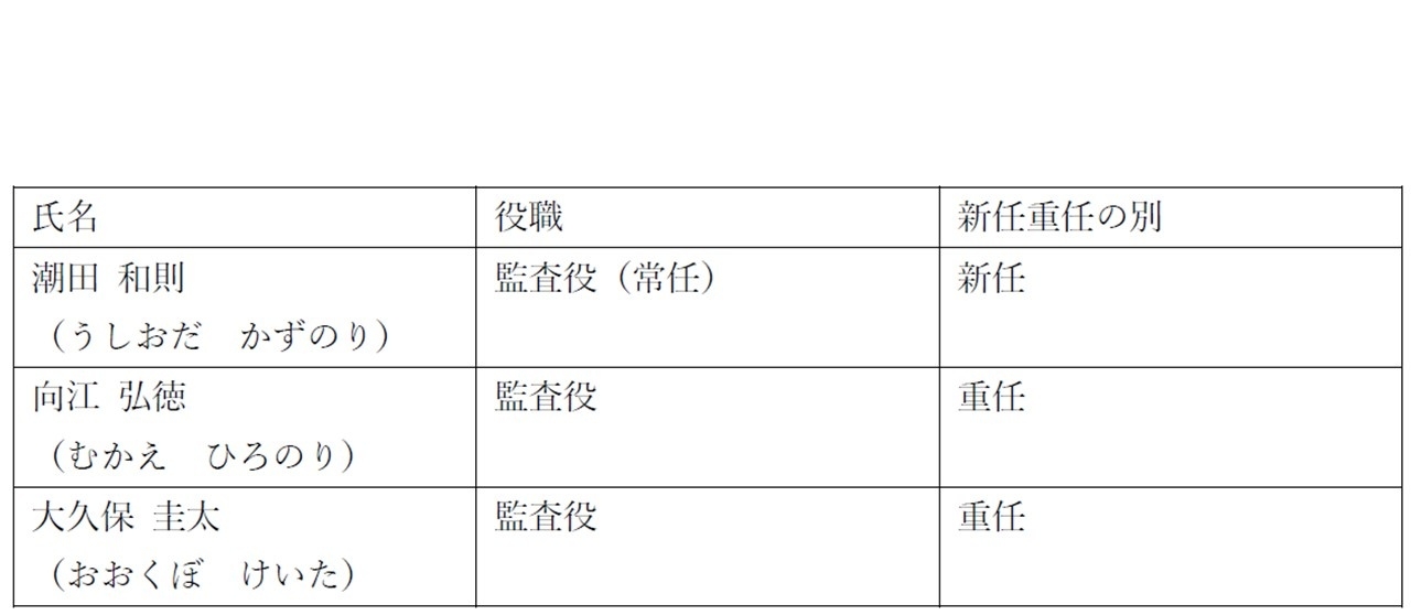 ※佐藤智晴監査役は今般の定時株主総会終結時をもって任期満了により退任となっております。