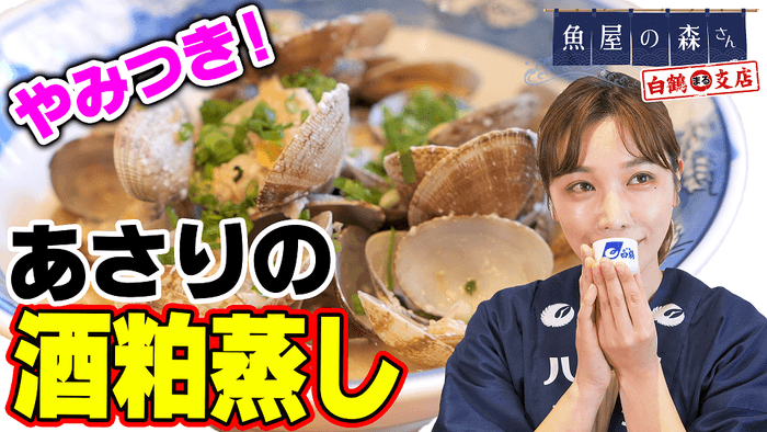第1弾は、4月6日(火)から「魚屋の森さん 白鶴まる支店:【あさりの酒粕蒸し】」を公開します。ヘルシーで体がポカポカに、そんな女性に嬉しい酒粕を使った森さん考案の絶品おつまみレシピをぜひ作ってみてください。