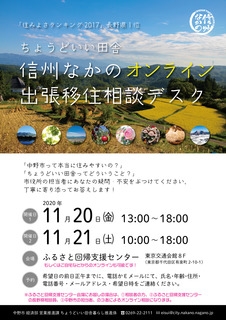 「信州なかの出張移住相談デスク」を開設します!【11月20日・21日】【長野県中野市】