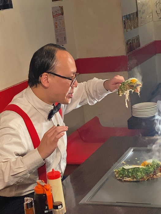 今回もお好み焼きを年間300食平らげるという大学教授&舞台となるお好み焼き店「ちんちくりん」の店主、そして実況のプロである榮アナウンサーがガチンコ過ぎる審査!