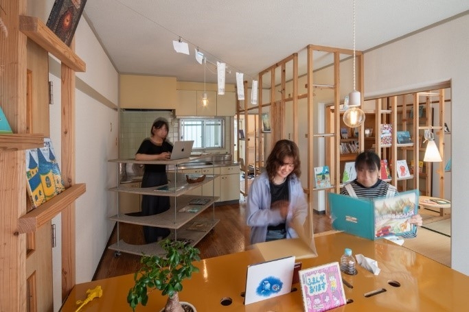 名城大学と名古屋市が2022年11月18日に締結した「名古屋市定住促進住宅の入居促進に関するモデル事業に関する確認書」の一環で、谷田研究室が定住促進住宅「一つ山荘」(名古屋市天白区)で絵本サロン「一つ山荘絵本サロン105」を2024年4月に開所しました。名古屋市住宅供給公社、名古屋市住宅都市局住宅管理課、天白図書館(絵本協力)、福祉事業所、デジファブ工場、本学の起業活動拠点ものづくりスペース「M-STUDIO」などが協力した多様性にあふれた取り組みで、2024年4月以降、週3回程度、学生が管理人を務め滞在し、現在も地域住民や子供たちと交流を続けています。
