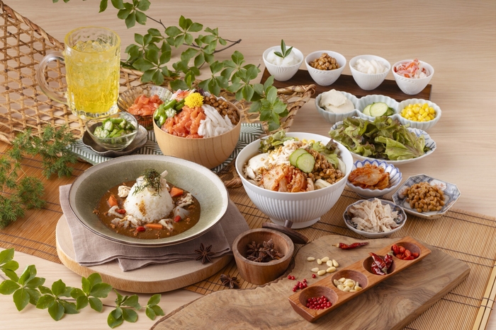 お食事には、サウナ後にぴったりのサウナ飯が新たに登場します。汗とともに失われたエネルギーを補う、スパイス香る「薬膳カレー」や、海の幸の旨みが体に染み渡る「海鮮トロトロ丼」。さっぱりとリフレッシュできる「サラダうどん」など、食の面からもお客様の“ととのい”をサポートいたします。