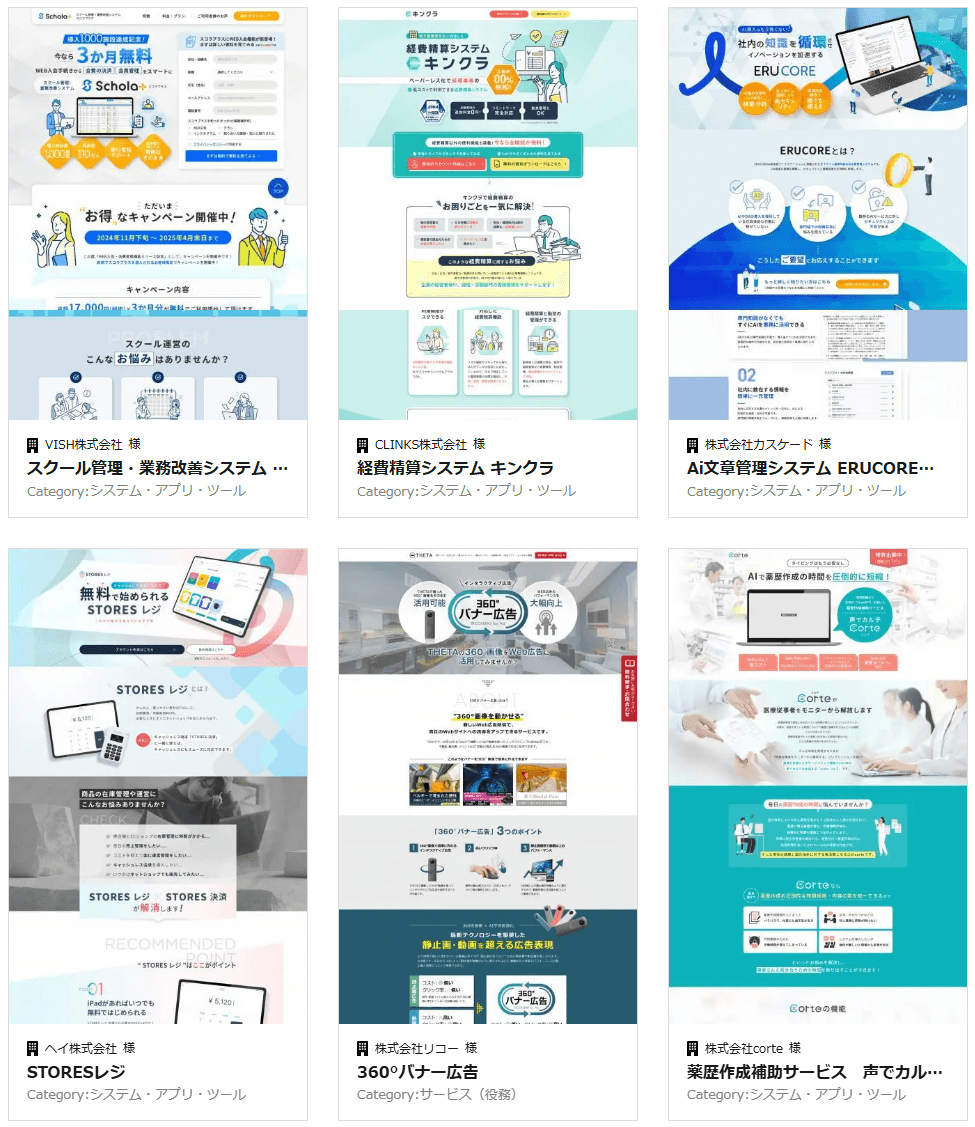 システム・アプリ・ツール分野のPC向けLP制作実績を52件に更新