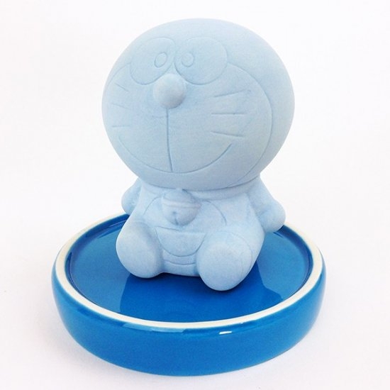 パステルブルーのカラーがキュートな、ドラえもんの素焼き加湿器です。