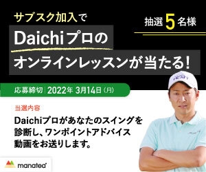 ・当選内容:Daichiプロがあなたのスイング動画を診断し、ワンポイントアドバイス動画をお送りします。