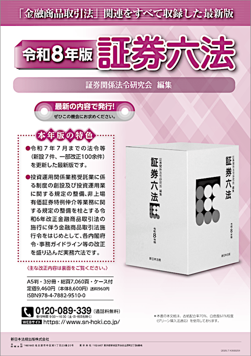 「金融商品取引法」関連をすべて収録した最新版!『証券六法 令和8年版』9/12に新刊発売!