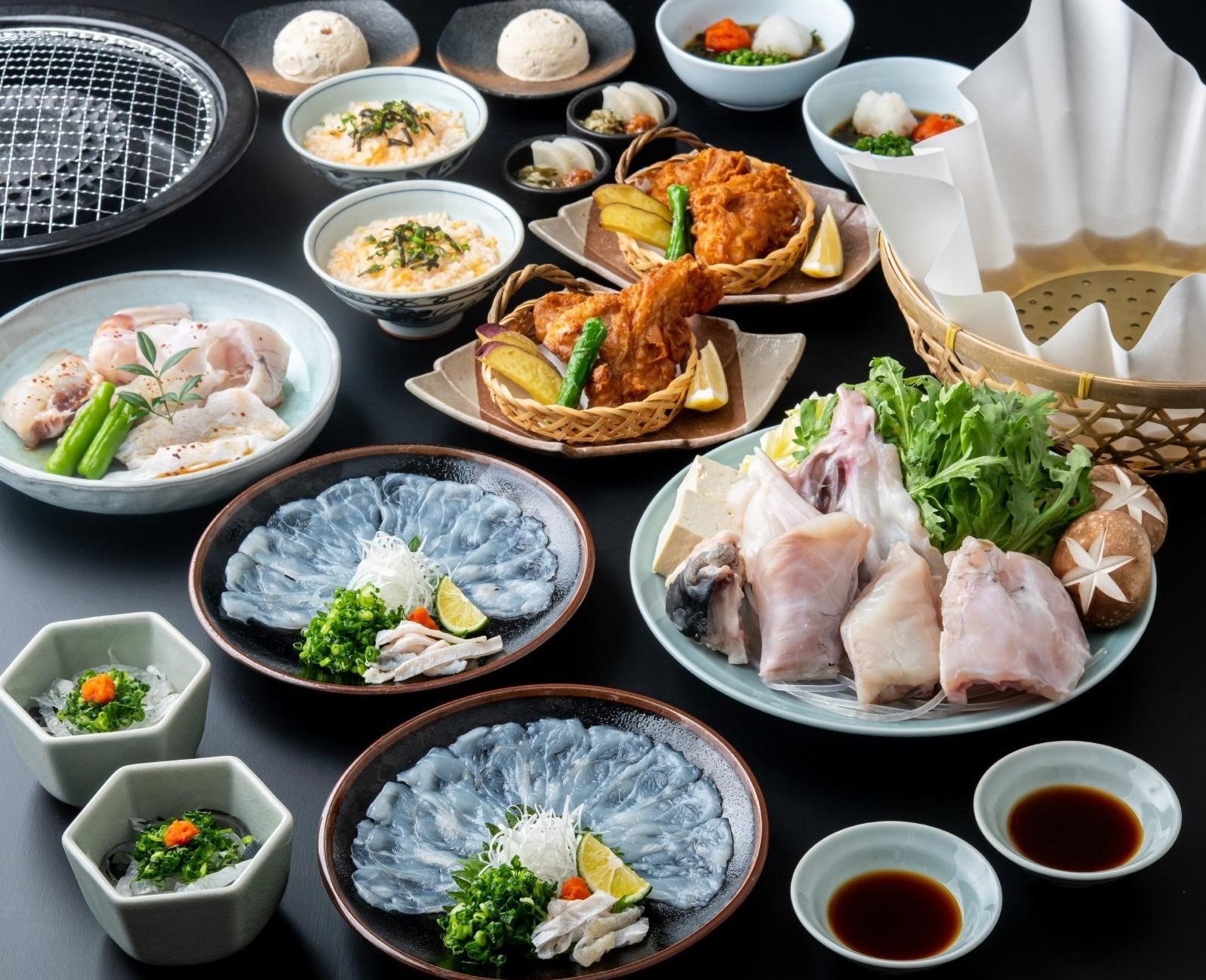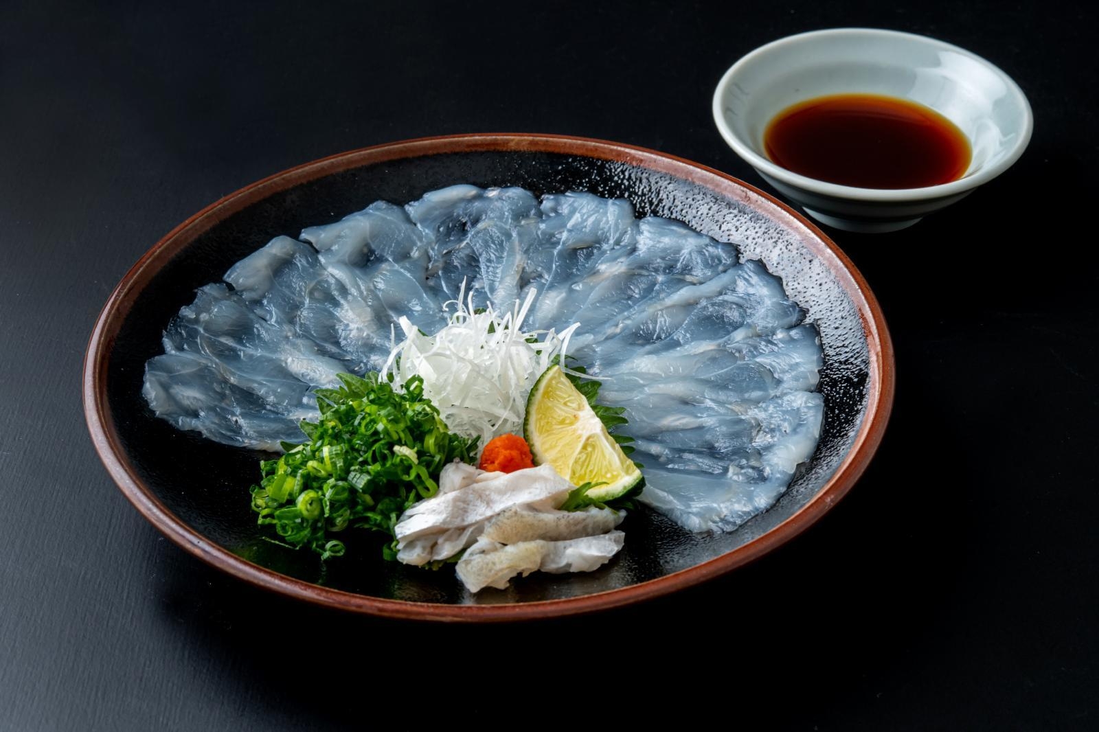 濃厚な旨味とプリっとした弾力食感を特製ポン酢でご堪能いただけます。〆の天然とらふぐ雑炊も格別です。