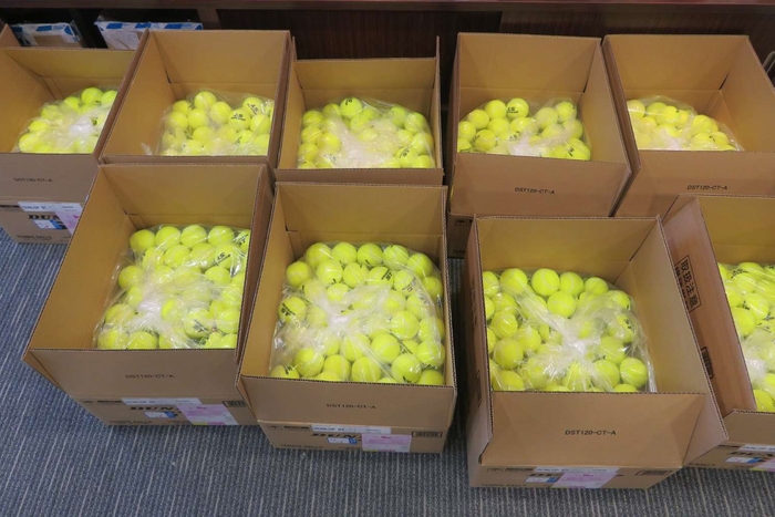 ・テニススクールにテニスボールを納品する際、お客様のご要望に応じて、ペット容器に入れず箱詰めのみの簡易包装で納品しています。また、一部商品では工場出荷時からペット容器に入れず箱詰めの状態で出荷しています※3。スクール側は、手間のかかる開缶作業と、開缶時に出る廃棄物(容器・ふた)の処理が不要となります。