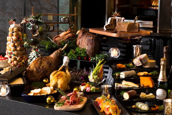 七面鳥の丸焼きやフォアグラのテリーヌ、ブッシュ・ド・ノエルなどのご馳走をお好きなだけ