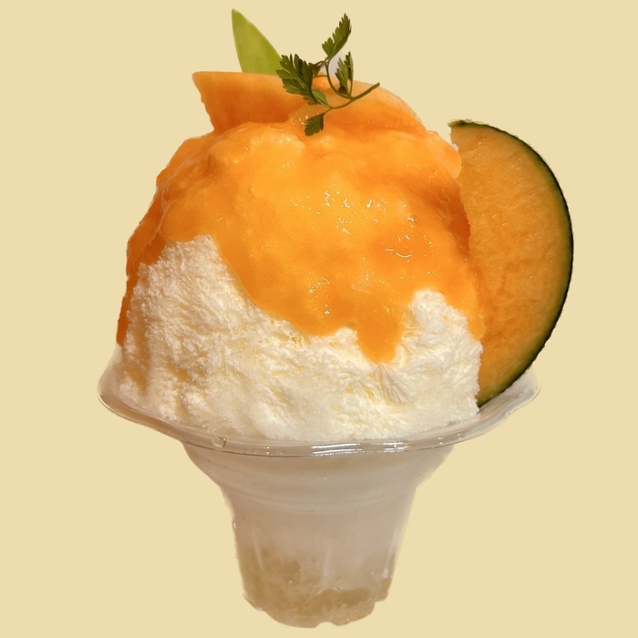 茨城県産なだろうレッドメロンを使用。塩チーズみるくシロップをベースに、たっぷりのメロンシロップと、果肉を大胆にトッピング。
