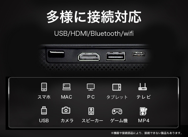 USB、HDMI、Bluetooth・Wi-Fiでも接続が可能です。