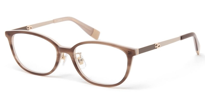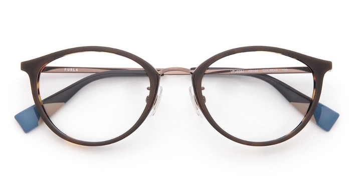 ウェリントンシェイプのアセテートフロントにメタルテンプルをあわせたコンビネーションモデル。テンプルはFURLA(フルラ)のアーチロゴを中心に前後で2色のカラーに塗り分け、トンオントーンでまとめたカラーになっています。