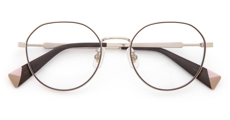 オーバルとボストンの中間の掛けやすい玉型のモデル。リムエナメルがアイシャドウのように顏周りを華やかに演出します。βチタンとアセテートのコンビネーションテンプルは、しなりやすい構造+軽量で掛けやすく疲れにくい仕様です。