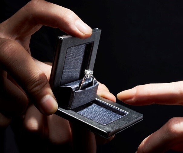 ダイヤモンドを贈ってプロポーズをすることができるサービスです。パートナーのお好みのデザインやサイズが分からない方でもご安心いただけます。ダイヤモンドは専用のケースにお入れします。プロポーズ後、ダイヤモンドを購入したショップにパートナーとともにお越しいただき、お好きなデザインの婚約指輪に仕立てることができます。