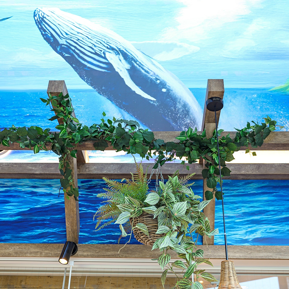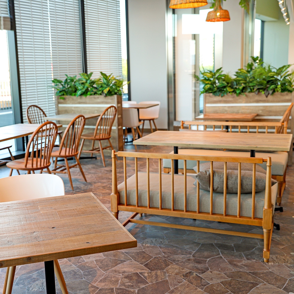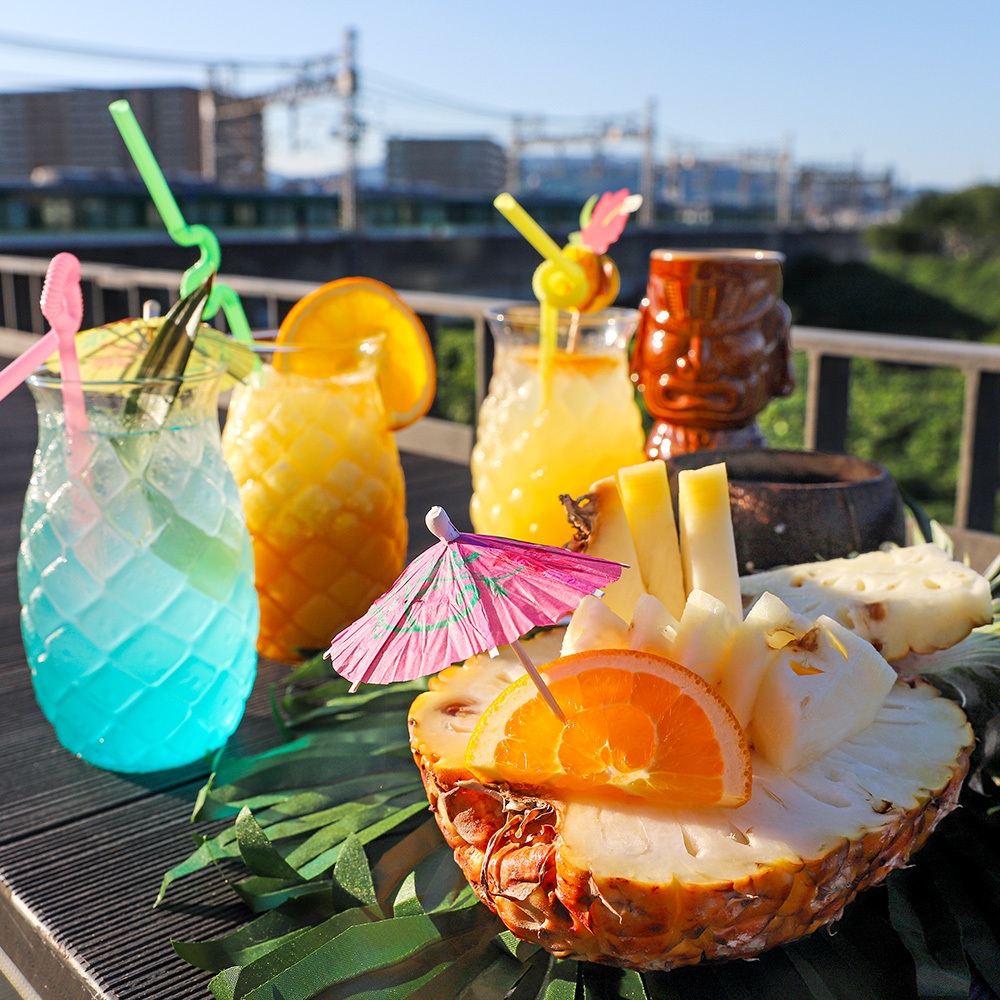 店内は、ゆったりとしたソファー席、外の景色を楽しめる半テラス席などをご用意。駅直結立地ながらハワイにいるかのようなリゾート気分を味わっていただけます。