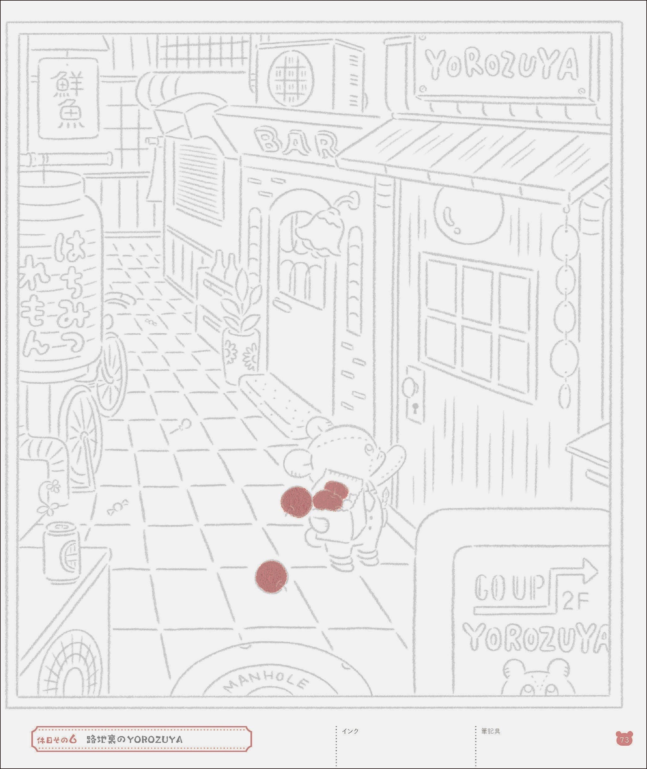 本書はシリーズ10万部を突破した『ガラスペンでなぞる ツキアカリ商店街』(著:九ポ堂)に続くつちや書店のガラスペンでなぞるシリーズの続巻で、今回はYOROZUYAの4人組の活躍を楽しみながらなぞる、ストーリー性のあるイラストなぞりの本になります。