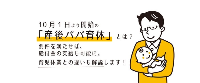 10月1日より開始の「産後パパ育休」とはどんな制度?要件を満たせば、給付金の支給も可能に。育児休業との違いも解説。