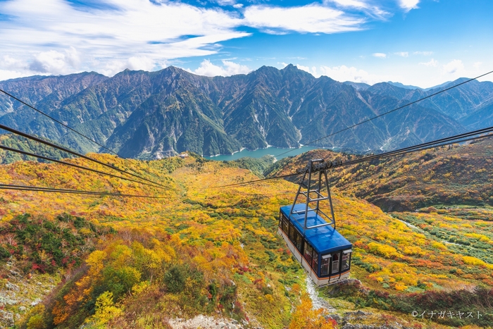 中部山岳国立公園・立山にある世界有数の山岳観光ルート。富山県の立山駅から長野県の扇沢間はケーブルカーやバス、ロープウェイなど6つの乗り物を乗り継いで移動することができ、標高3,000m級の立山連峰や黒部ダムの絶景を気軽に楽しむことができます。