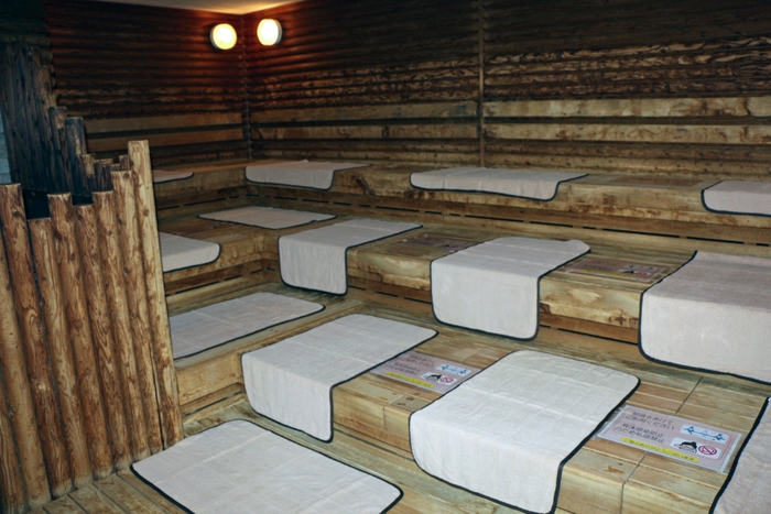 ロッキーサウナは木をふんだんに使用した定番サウナです。肩こり解消、免疫力アップ、疲労軽減、美肌効果、むくみ解消、ニキビ治療、ダイエットなど様々な効果があると言われており、8分〜10分ほどサウナに入り、その後水風呂もしくは露天でクールダウンするという入り方が一般的です。水風呂が苦手な方には、露天風呂エリアの空をながめながら横になれる「寝床」利用がおすすめです。