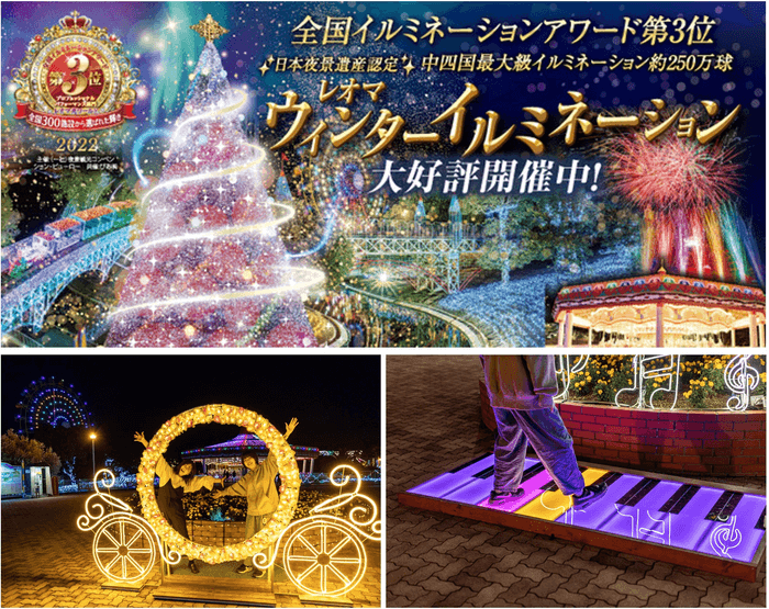 - 【楽】第10回イルミネーションアワード プロフェッショナルパフォーマンス部門第3位受賞!* レオマ光ワールドのイルミネーション、「レオマウィンターイルミネーション2022」