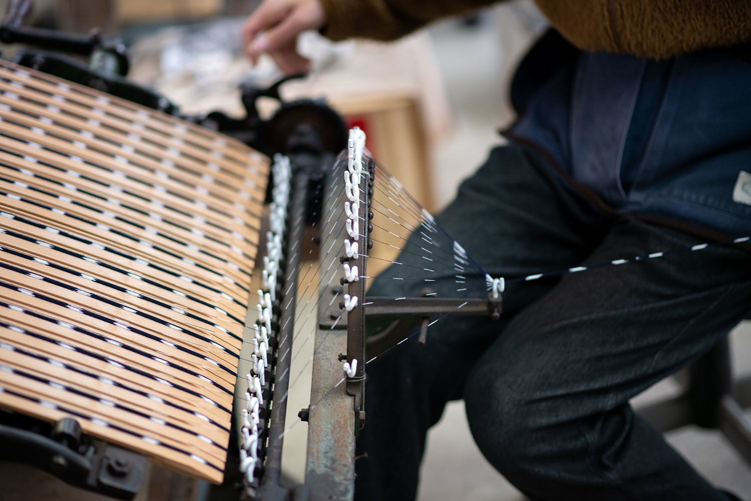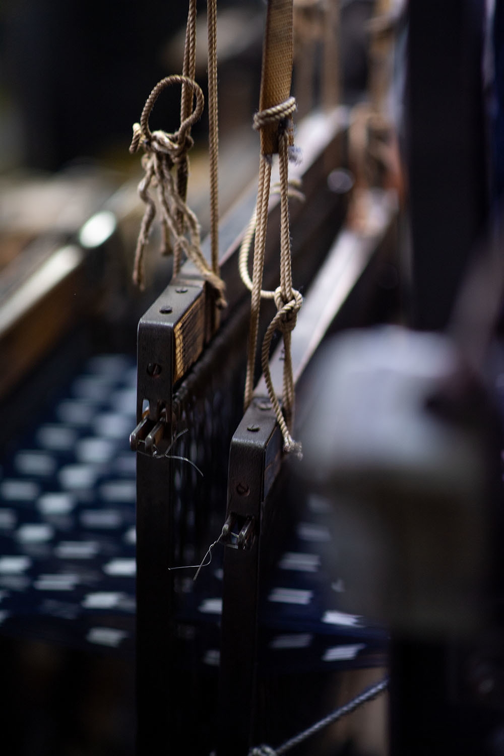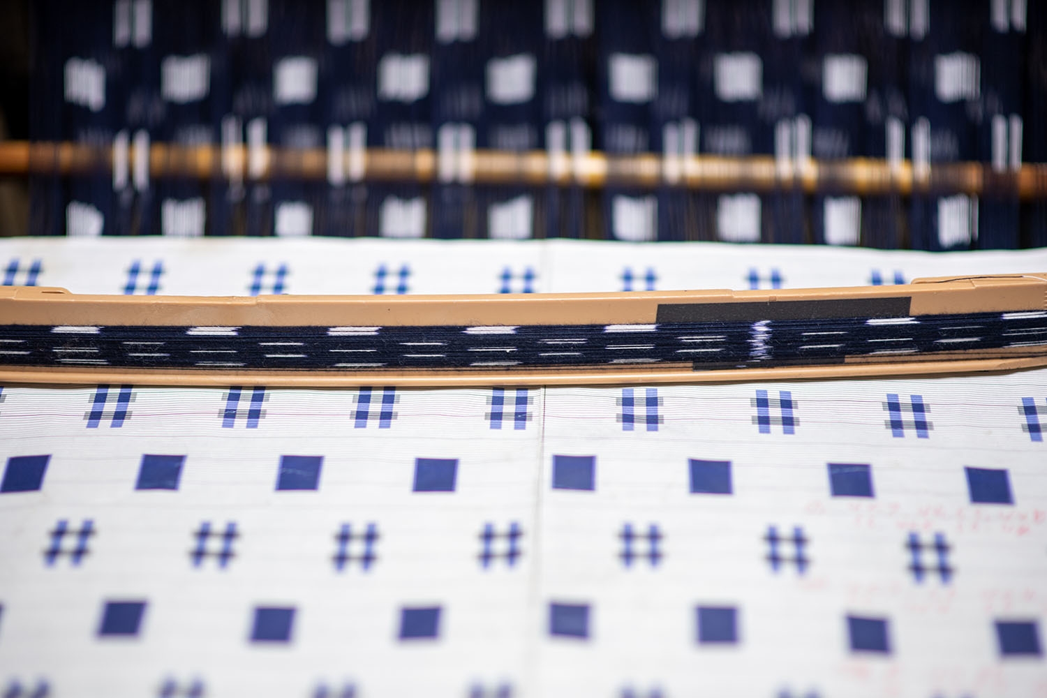 久留米絣は呼吸するかのような生地、それは糸の繊維に可能な限りのストレスを省き優しく織りあげる綿織物だからです。