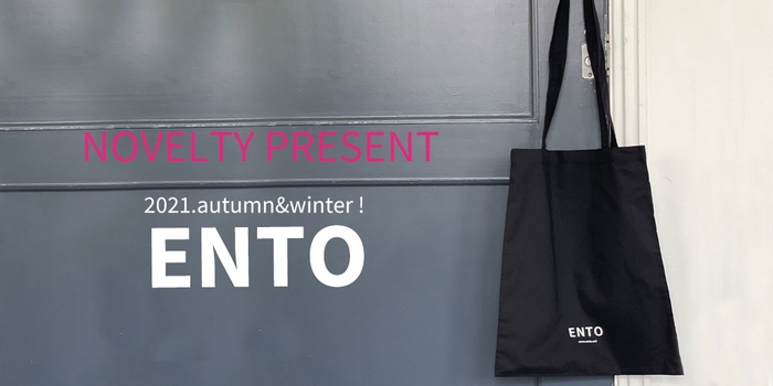 9月8日(水)より、ENTOオンラインショップ掲載商品を11,000円(税込)以上ご購入いただいた方限定で「ENTOオリジナルコットンエコバッグ」をノベルティとしてプレゼントしております。肩にかけられて小ぶりなので、ちょっとしたお出かけにもスタイリッシュにお持ちいただけます。