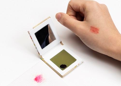 「紅」というと赤色を想像するかと思いますが、紅花から作られた純度の高い良質な紅は、何度も厚く重ねると玉虫色に光ります。当時の口紅は、紅猪口(べにちょこ)と呼ばれる陶磁器の茶碗や、紅板(べにいた)と呼ばれる携帯用の小さな容器などにぬられて販売されていました【図2】。このとき紅は容器に厚くぬられて乾燥させられているため、玉虫色に光っています。通常であれば、......