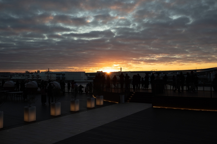 初日の出をご覧いただける時間帯にテラスにて日本酒や、あたたかい甘酒のふるまいサービスを行います。ぜひお越しください。