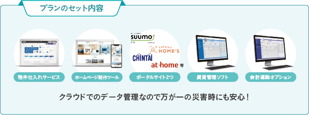 スタート・バリュープランは不動産業務のオンライン化・業務効率化に必要なクラウドサービスがセットになったプランです。