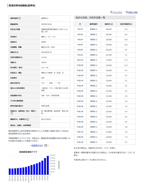 ※エリア:基準地価(価格)の変動率が高かった福岡県内の基準地(福岡東-12)周辺のマンション