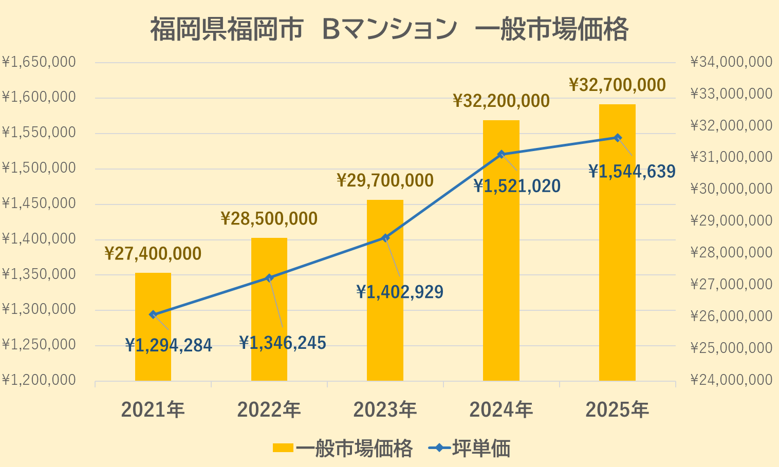 Bマンションの一般市場価格・坪単価の推移は上記【図4】の通りです。