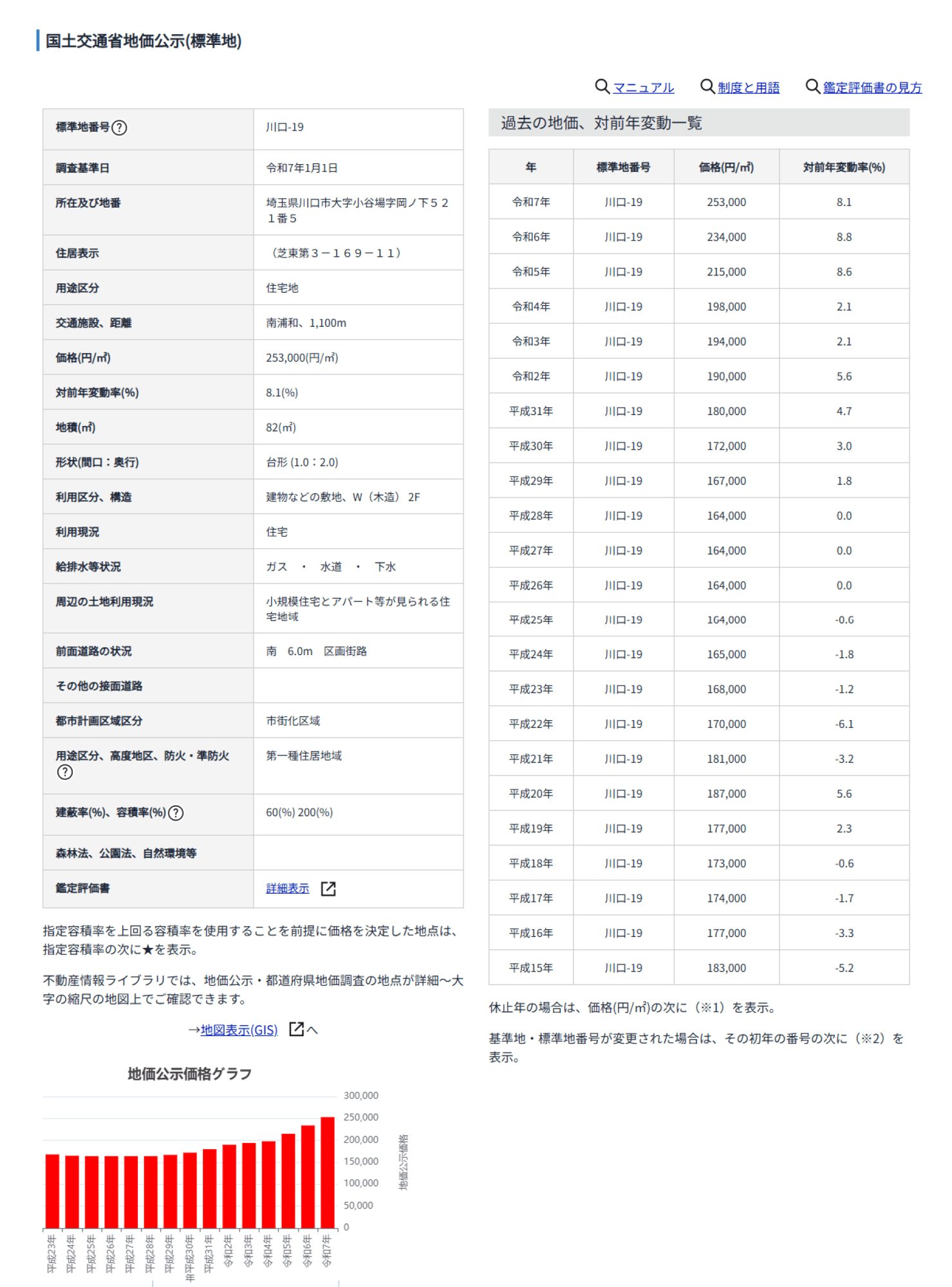 (標準地「川口-19」では上昇率が8.1% ※【図1】参照 )