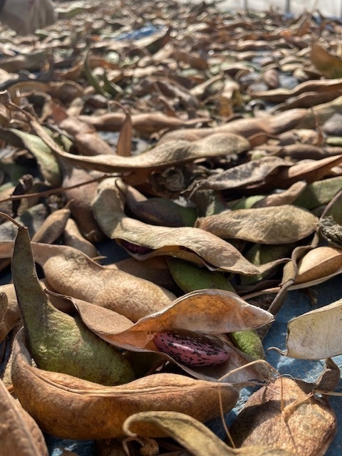 花豆はツルが長くのびる為、アーチ状の支柱も長く、畑に差し込む時もとても大変です。最も大変だと感じたのは豆の選定作業。よく乾燥させた豆を脱穀し、色味で分け、大きさで分け、割れや傷があるかどうかで分け、A品、B品、C品などに分けていく。この作業をほとんど手作業で行っており、長い時間と手間がかかっていることが良くわかりました。また、A品として出荷できるのは、収獲した豆のうち半分以下程。台風が来た時にはほとんどの豆がダメになってしまうこともあるそうです。