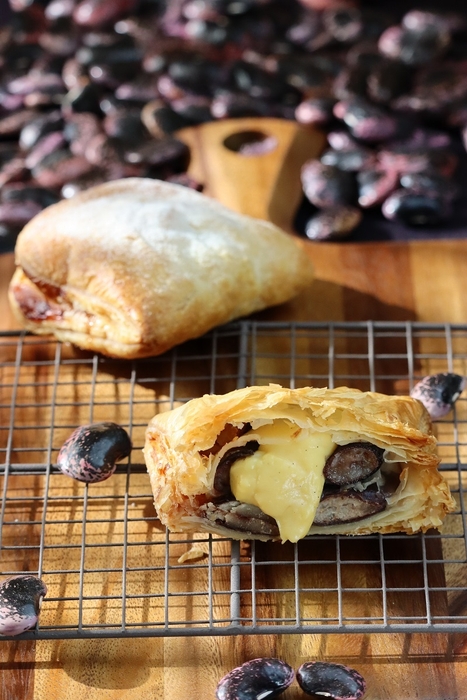 群馬県北軽井沢産の大粒の高原花豆がたっぷりと入ったパイとトロトロのカスタード、サクサクのパイ生地が合わさった新感覚スイーツです。